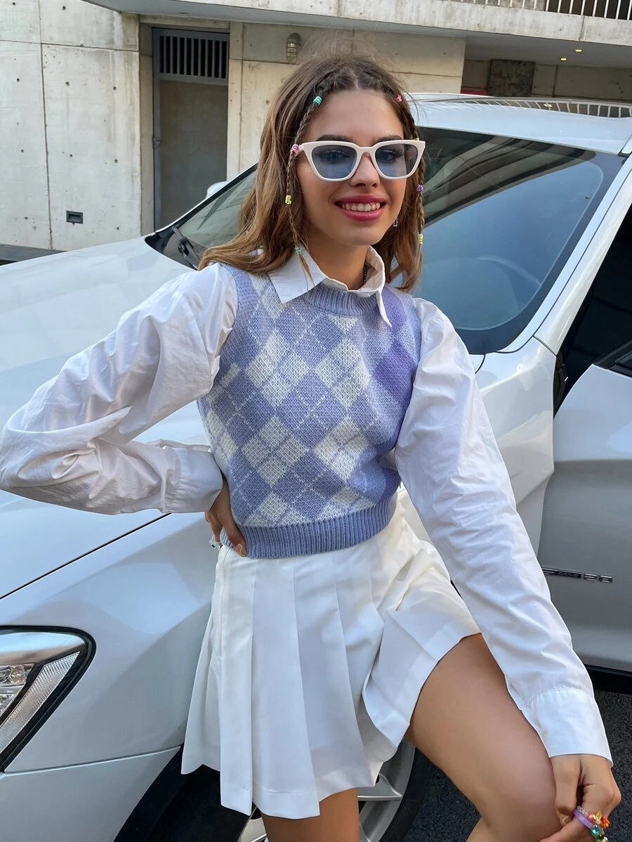 Argyle Pattern Sweater Vest Without Blouse