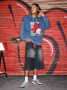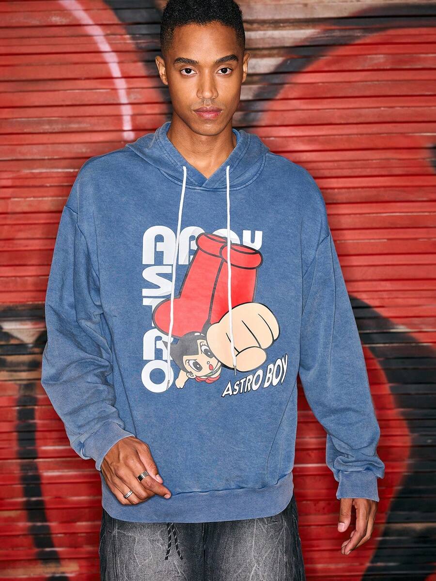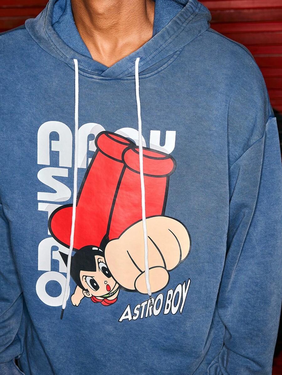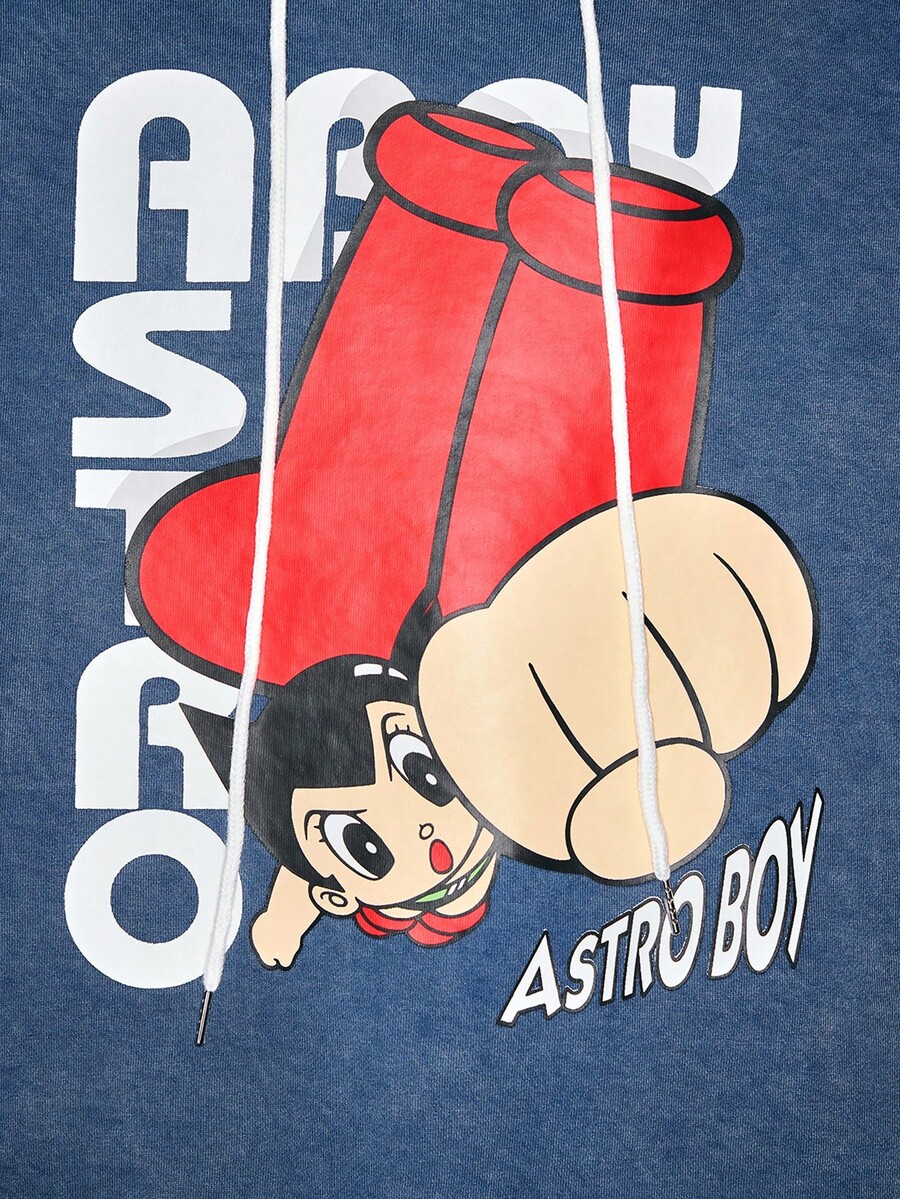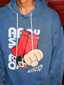 Astro Boy X ROMWE Men's Casual Letter & Cartoon Pattern Drawstring Hoodie