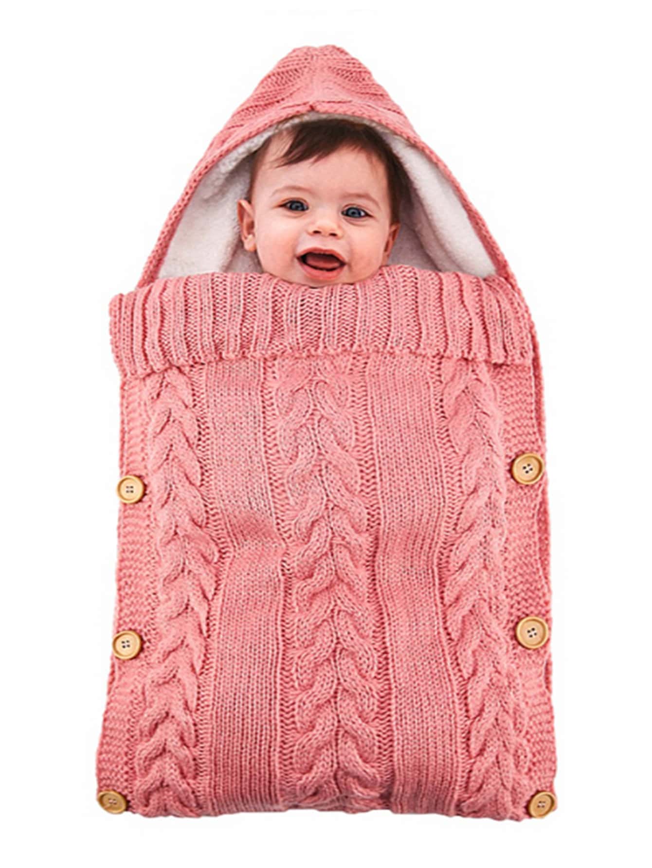 Baby Girl Button Detail Flannel Lined Knit Sleep Bag