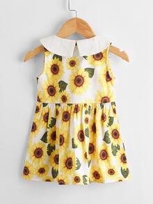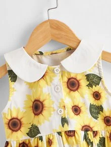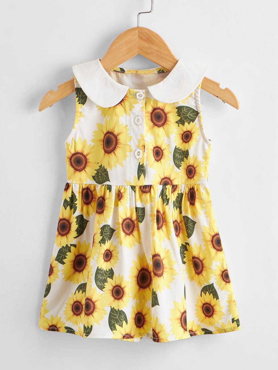 Baby Girl Sunflower Print Half Button Babydoll Dress