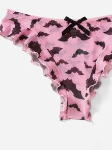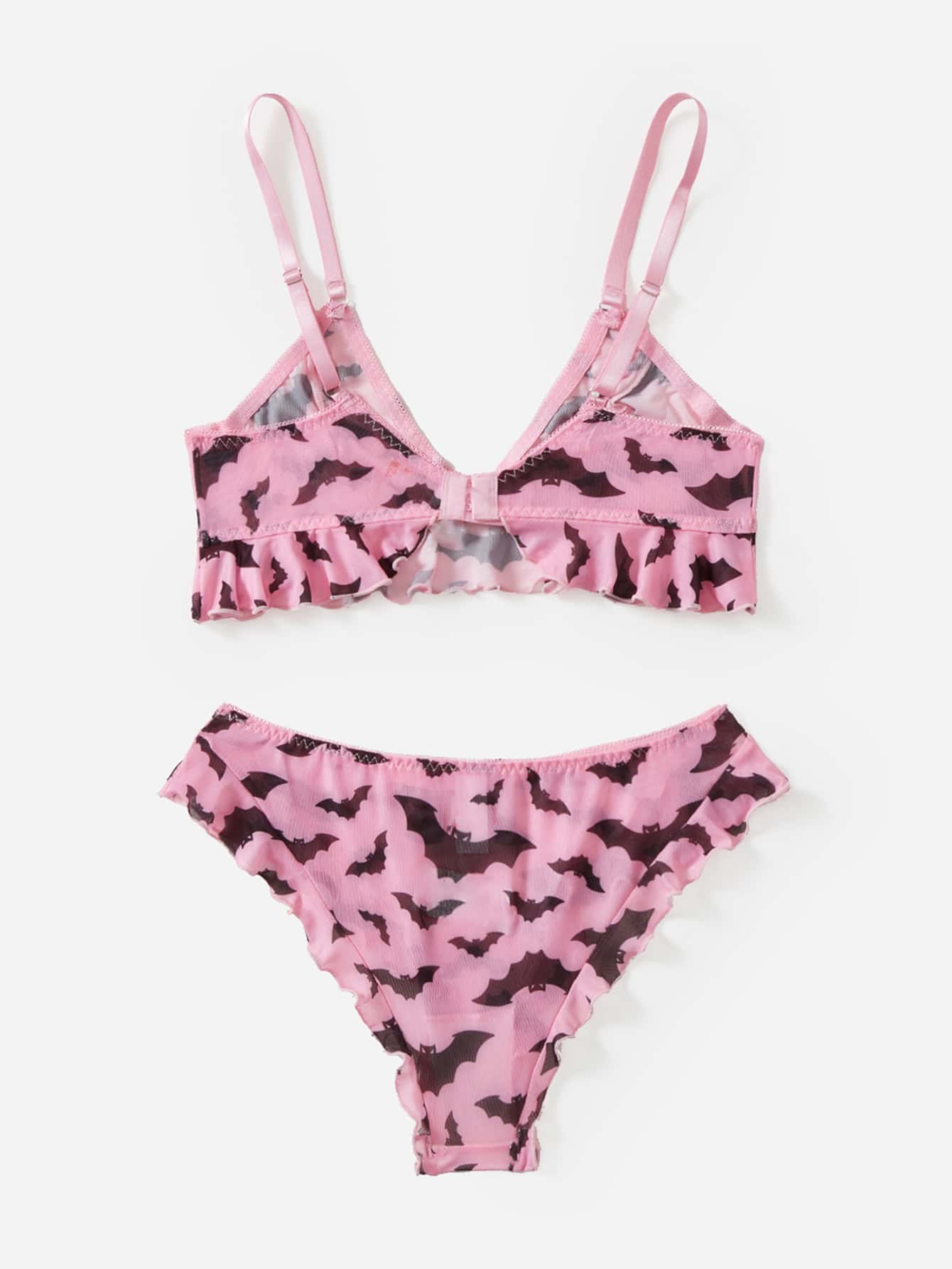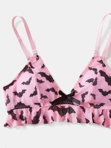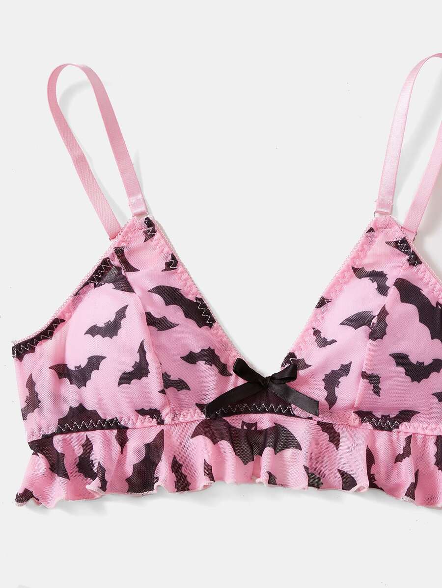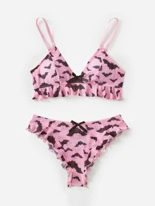 Bat Print Ruffle Hem Lingerie Set
