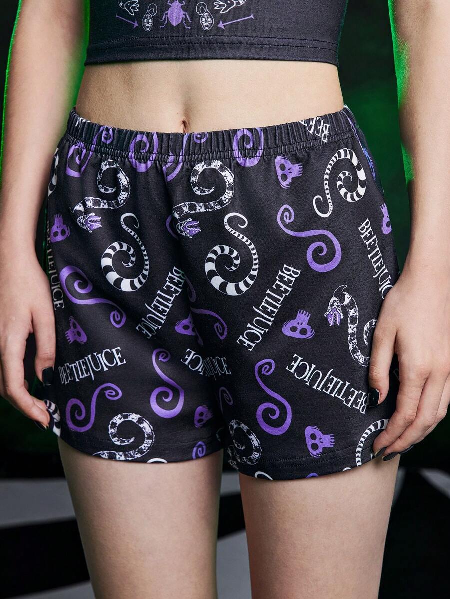 Beetlejuice | ROMWE Women Cartoon Graphic Ringer Camisole Top & Shorts Sleepwear Pajamas Set