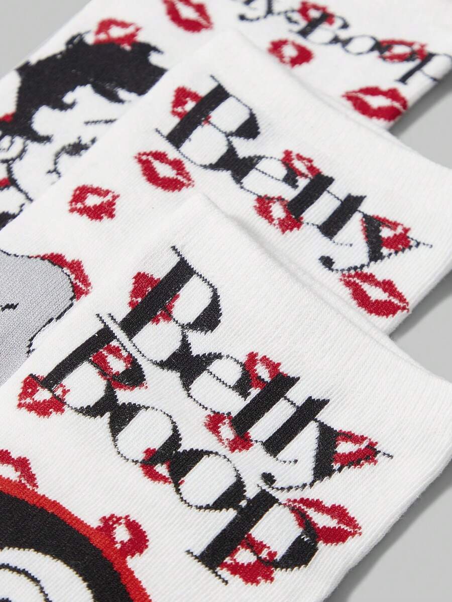Betty Boop | ROMWE 3 Pairs/Set Women's Short Socks, Cute Lips And Puppy Design