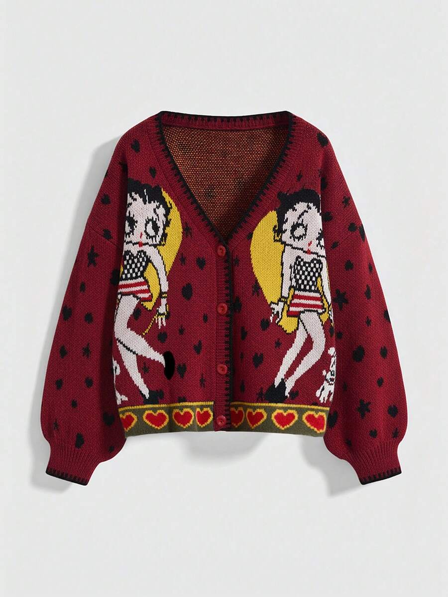 Betty Boop | ROMWE Women Y2K Betty Heart & Star Pattern Cardigan