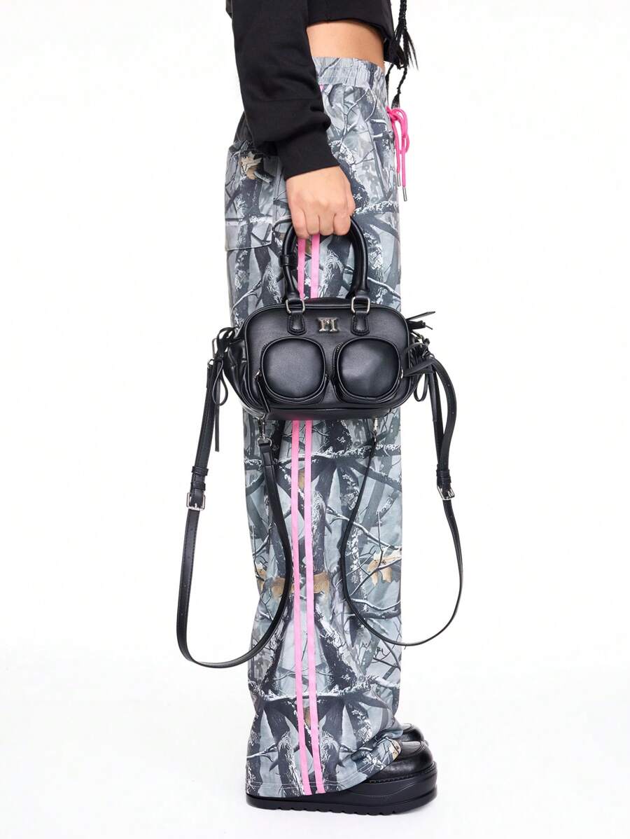 Grunge Punk Black Fashionable Versatile Dual Pocket Handbag