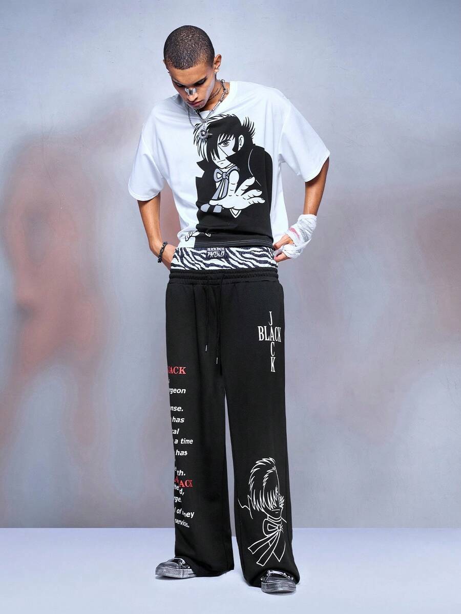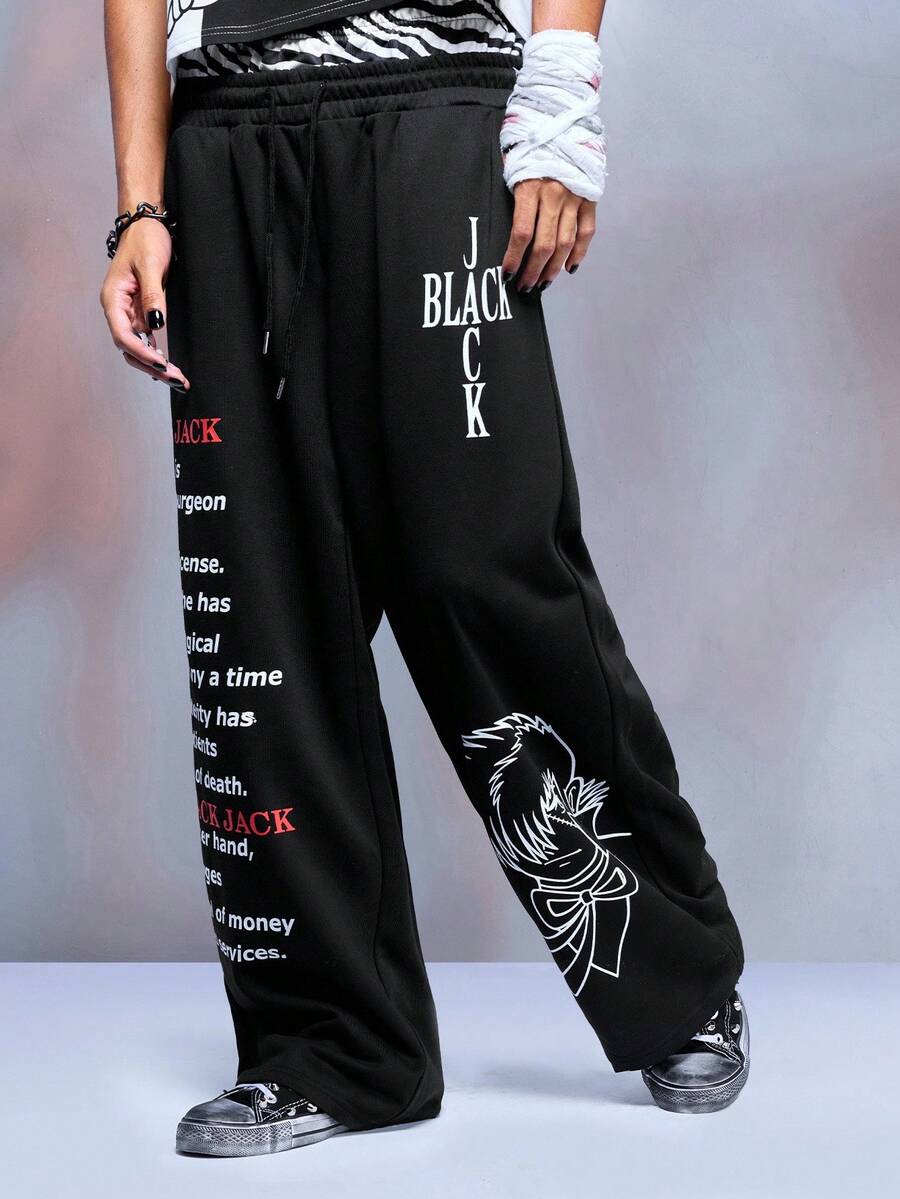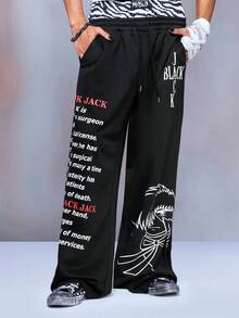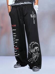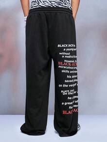 Black Jack X ROMWE Men's Letter & Figure Graphic Pocket Drawstring Waist Sweatpants
