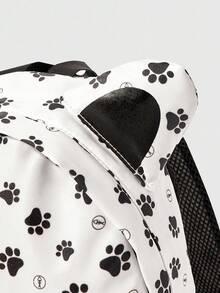 Kawaii Black Paw Print Pattern Ear Paw Design Large Capacity Multifunctional White Backpack, Suitable For School, Vacation, Social, Shopping, Casual & Fashionable