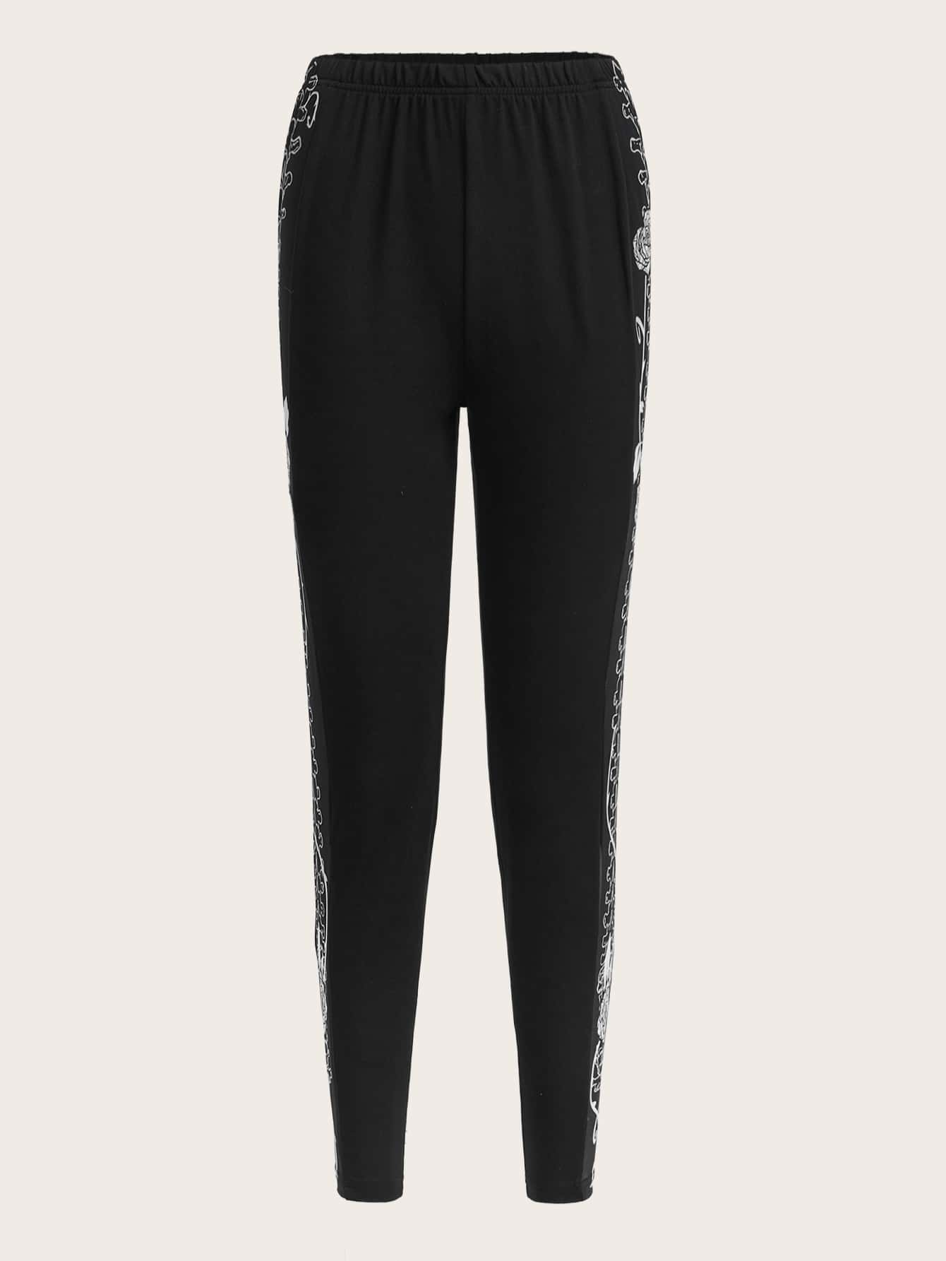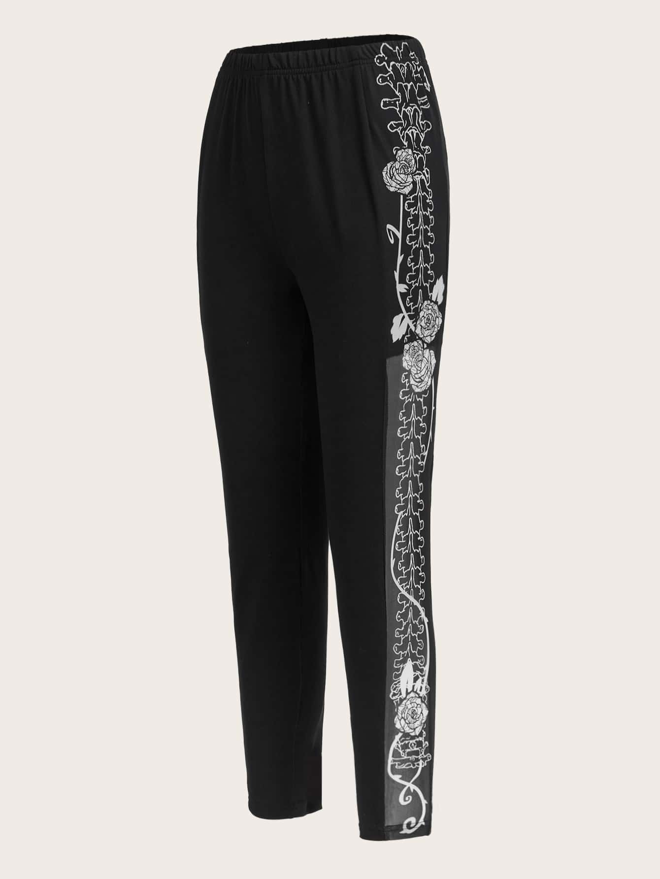 Bone & Floral Print Elastic Waist Leggings