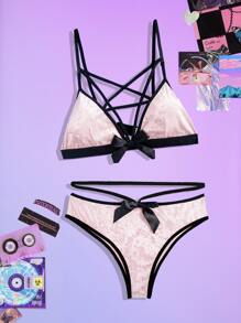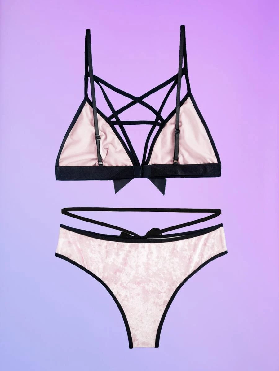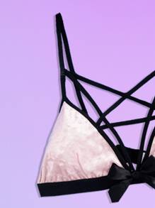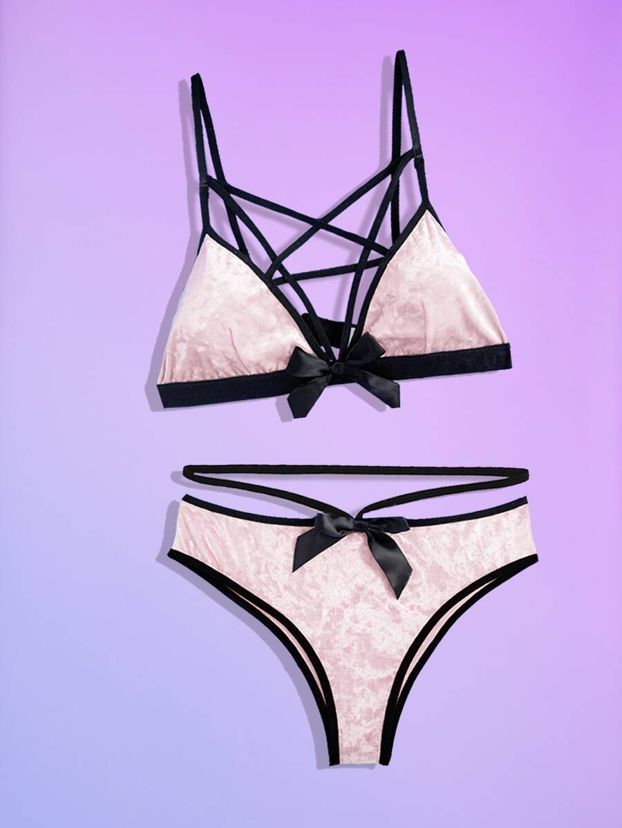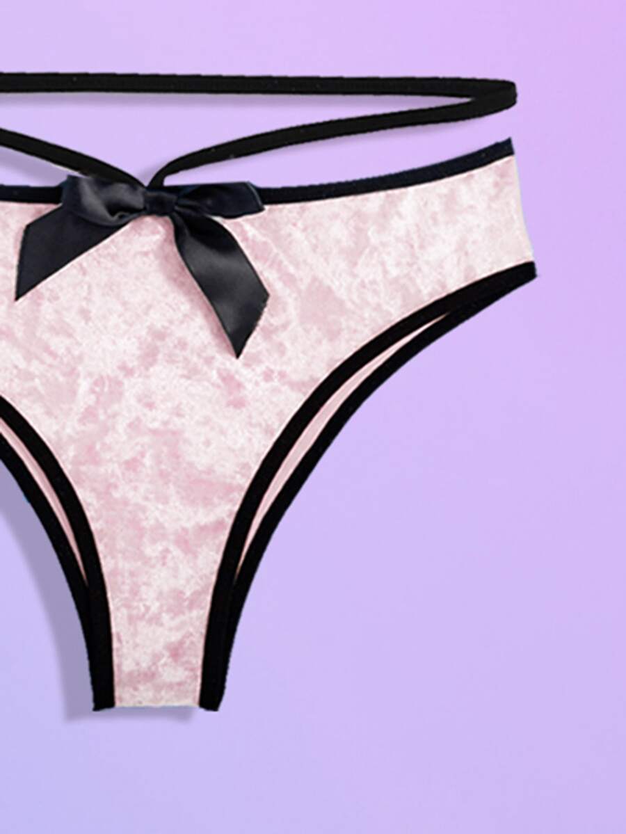 Bow Decor Velvet Lingerie Set