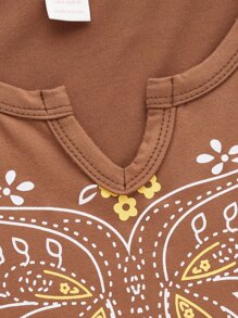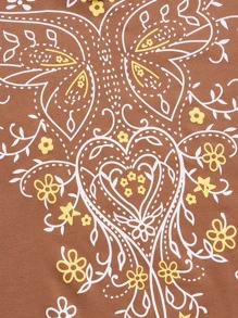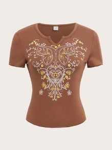 Butterfly & Floral Graphic Notched Neck Tee