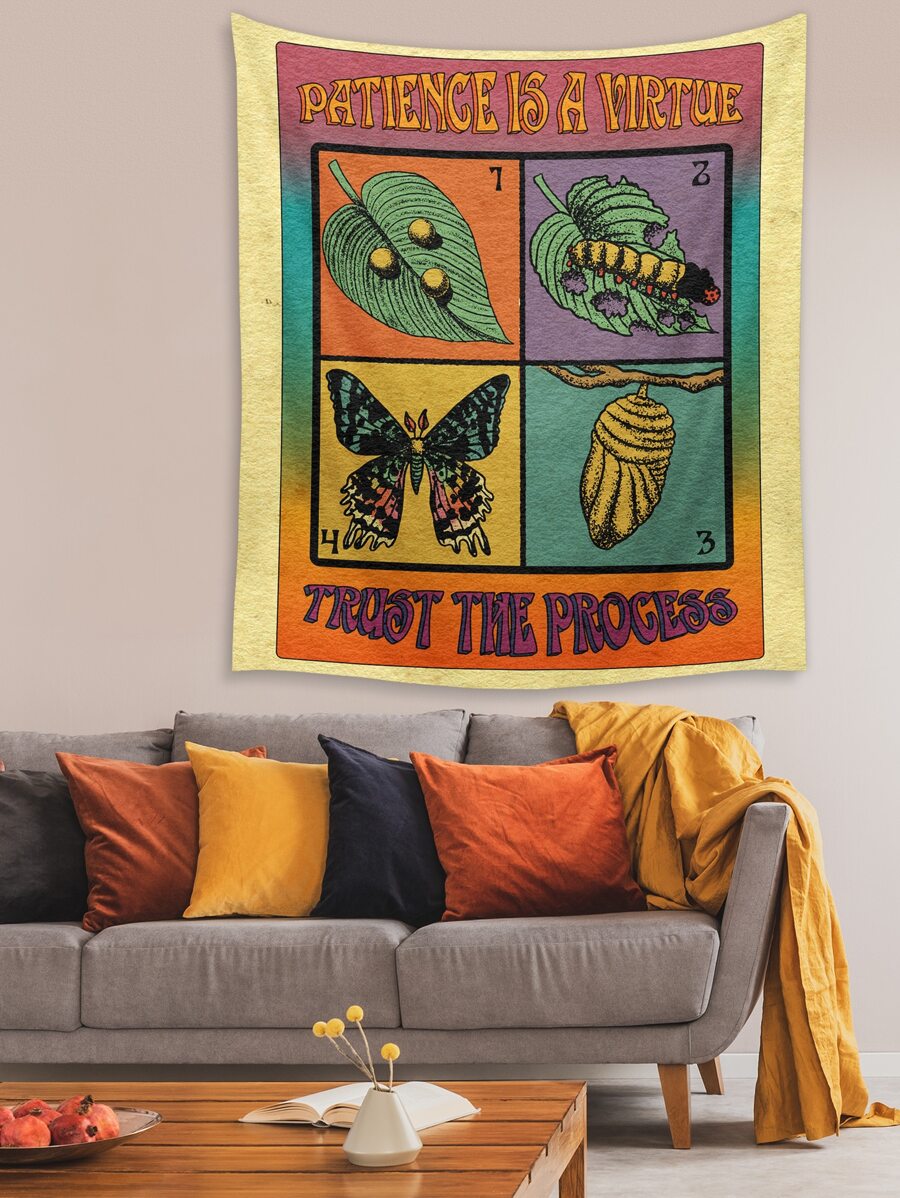 kmintern Butterfly & Leaf Print Tapestry