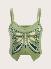 Butterfly Print Hanky Hem Cami Top