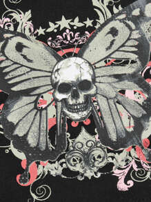 Goth Butterfly Print Heart Ring Decor Halter Top