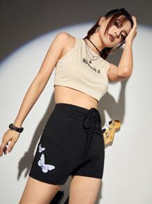 Butterfly Print Ruched Biker Shorts