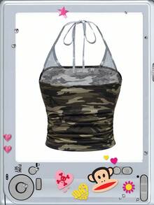 Paul Frank X ROMWE Camo & Letter Graphic Vintage Y2K Women Halter Neck Top