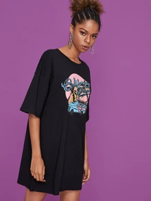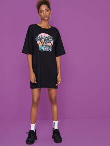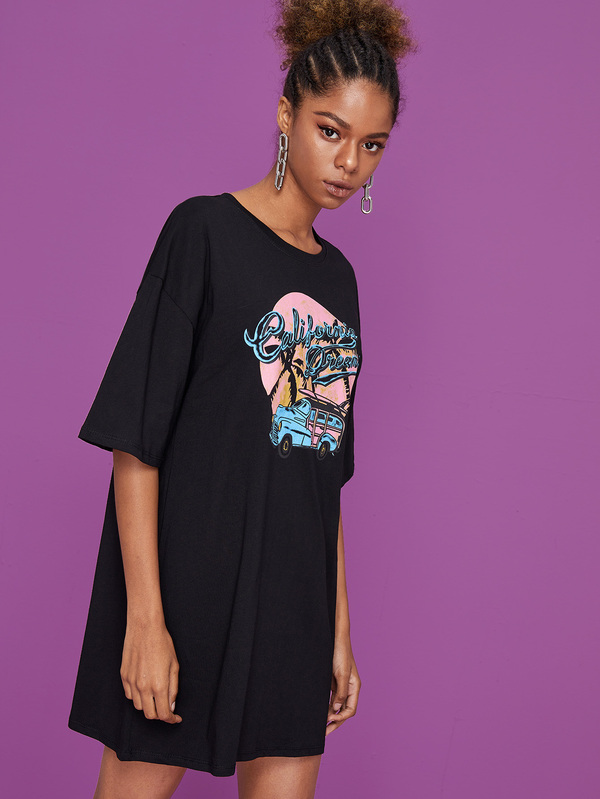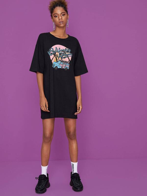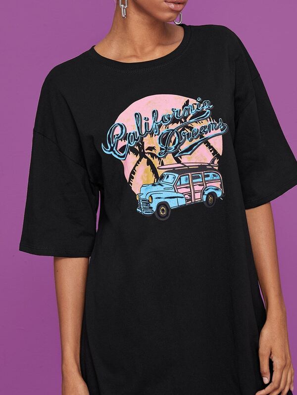 Car And Letter Print Tee Dress