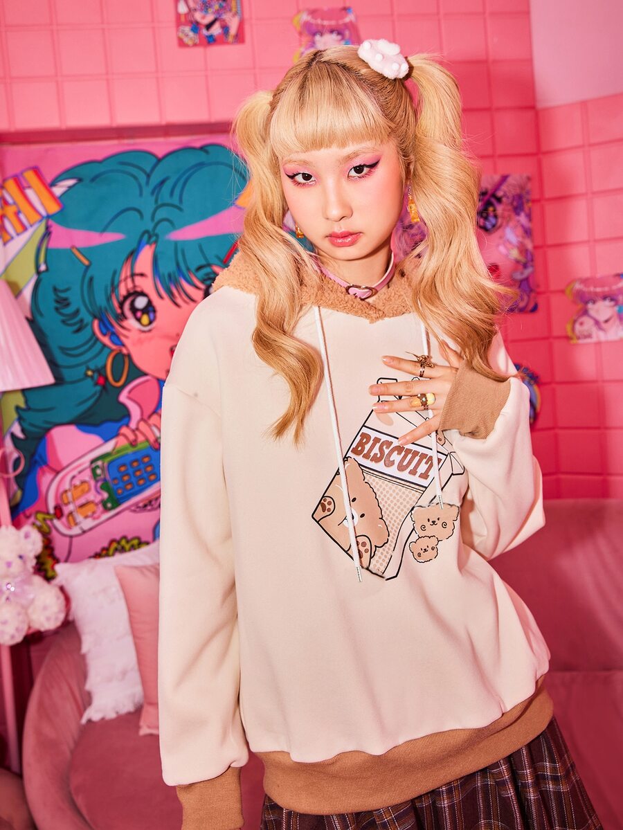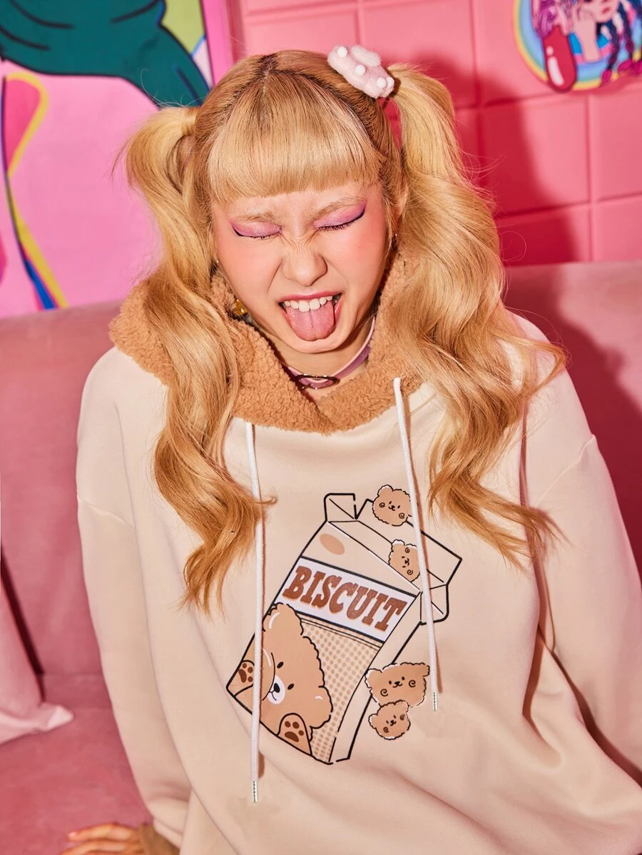 Kawaii Cartoon Bear Graphic Drawstring Hoodie