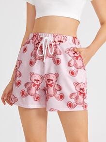 Cartoon Bear Graphic Drawstring Shorts