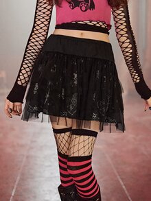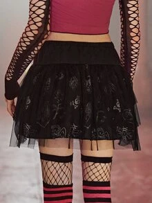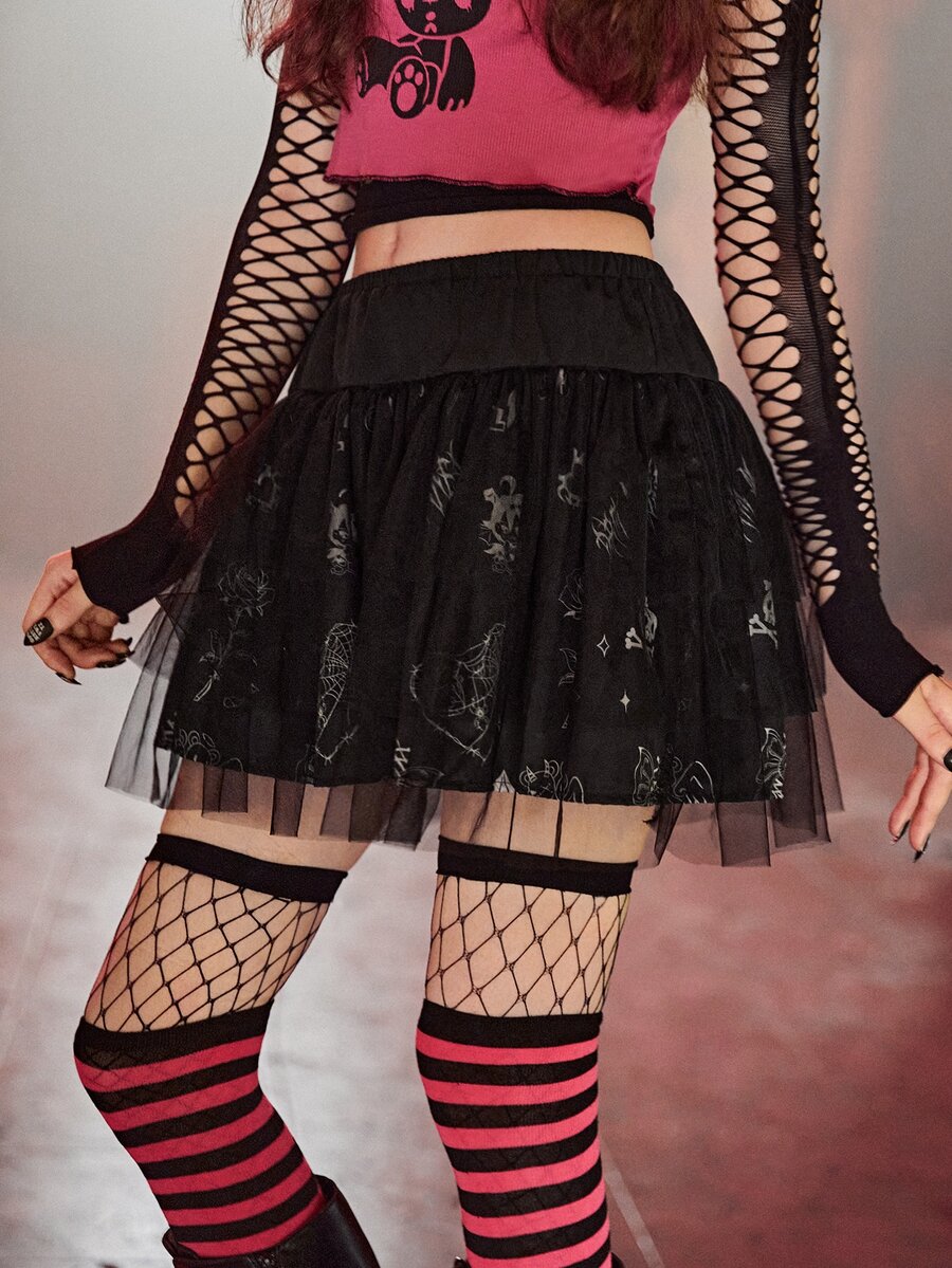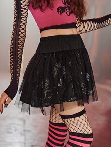 Cartoon Graphic Contrast Mesh Skirt