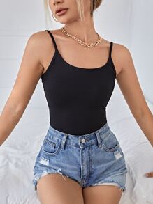 Casual Solid Slim Cami Black Top For Summer