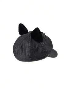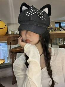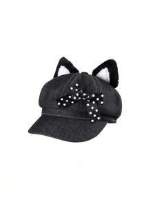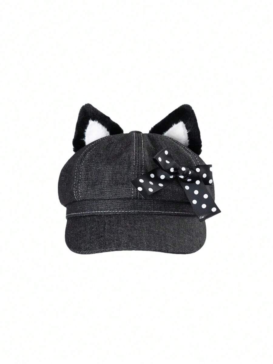 Anime Cat Ear Polka Dot Bow Octagonal Hat Beret Cap, Fashion Casual Versatile Black Newsboy Hat Sun Hat, Suitable For Vacation, Party, Social Occasions