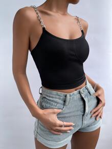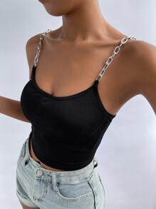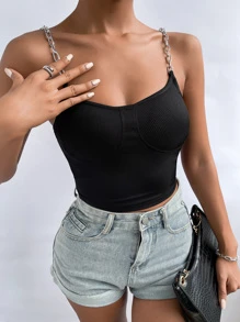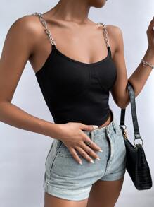 Chain Strap Rib Knit Cami Top