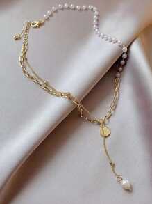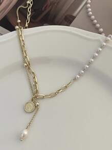 Coin Pendant Layered Chain Necklace
