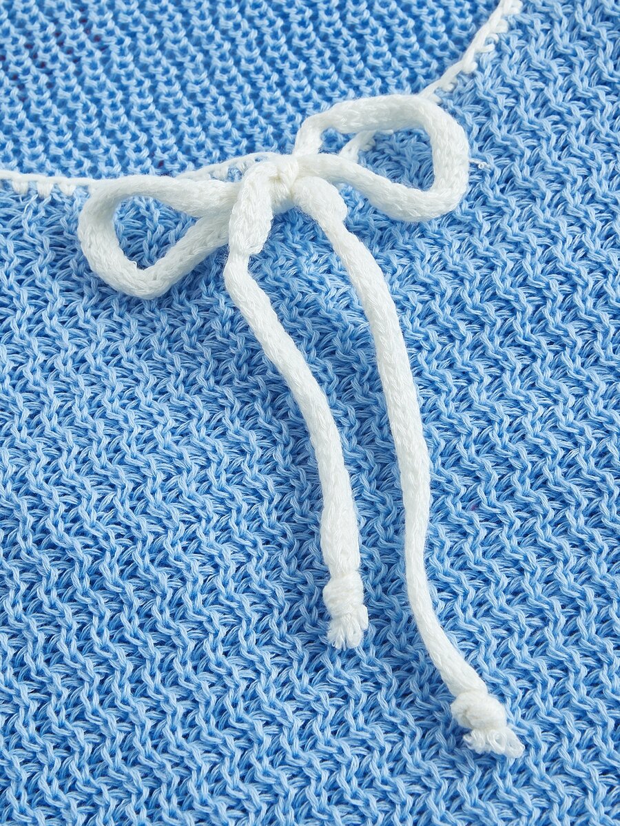 Contrast Binding Tie Front Crop Knit Top