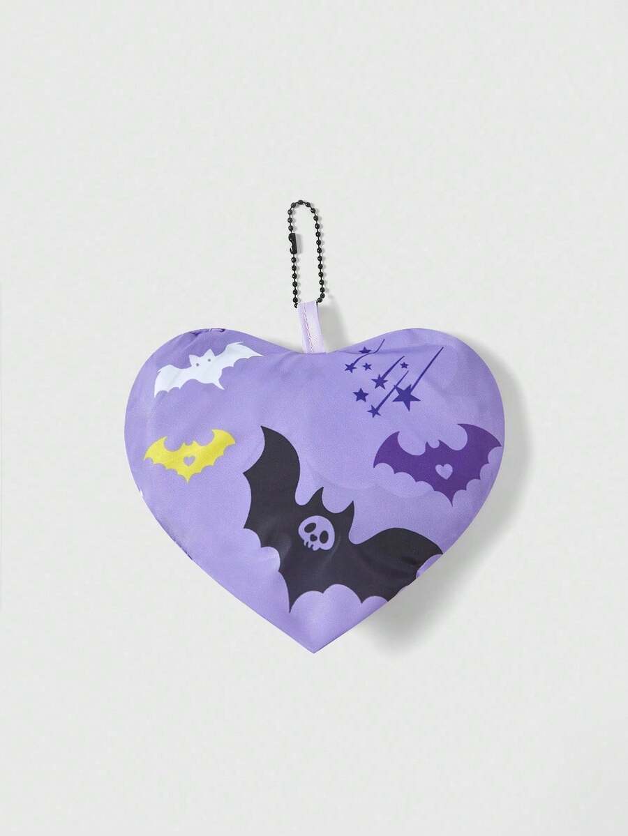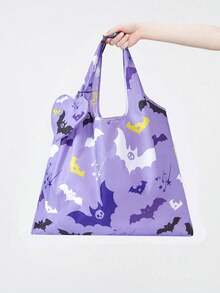 Grunge Punk Contrast Color Bat & Star Pattern Large Capacity Foldable Tote Bag With Coin Purse