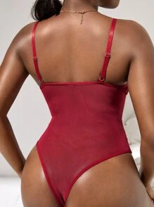 Contrast Lace Cut Out Bow Decor Teddy Bodysuit