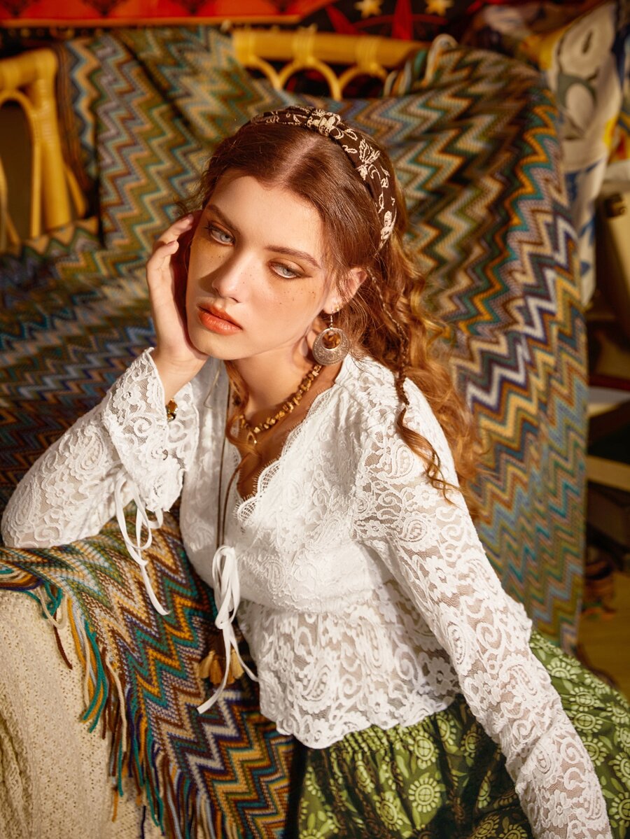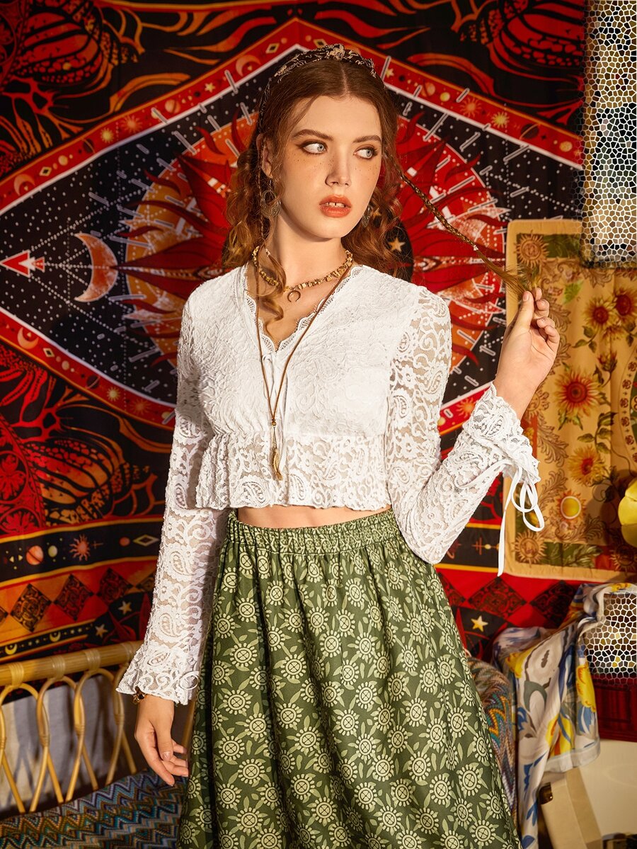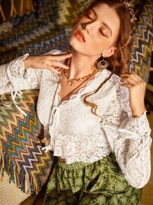 Contrast Lace Tie Front Crop Top