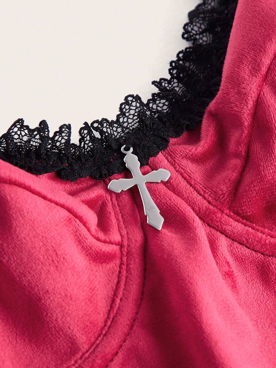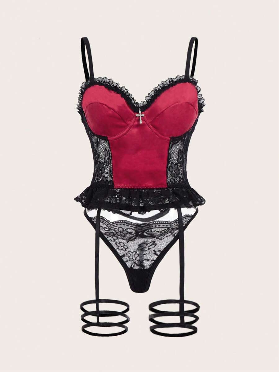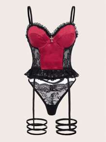 Goth Contrast Lace Underwire Garter Lingerie Set