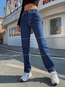 Contrast Stitching Straight Leg Jeans