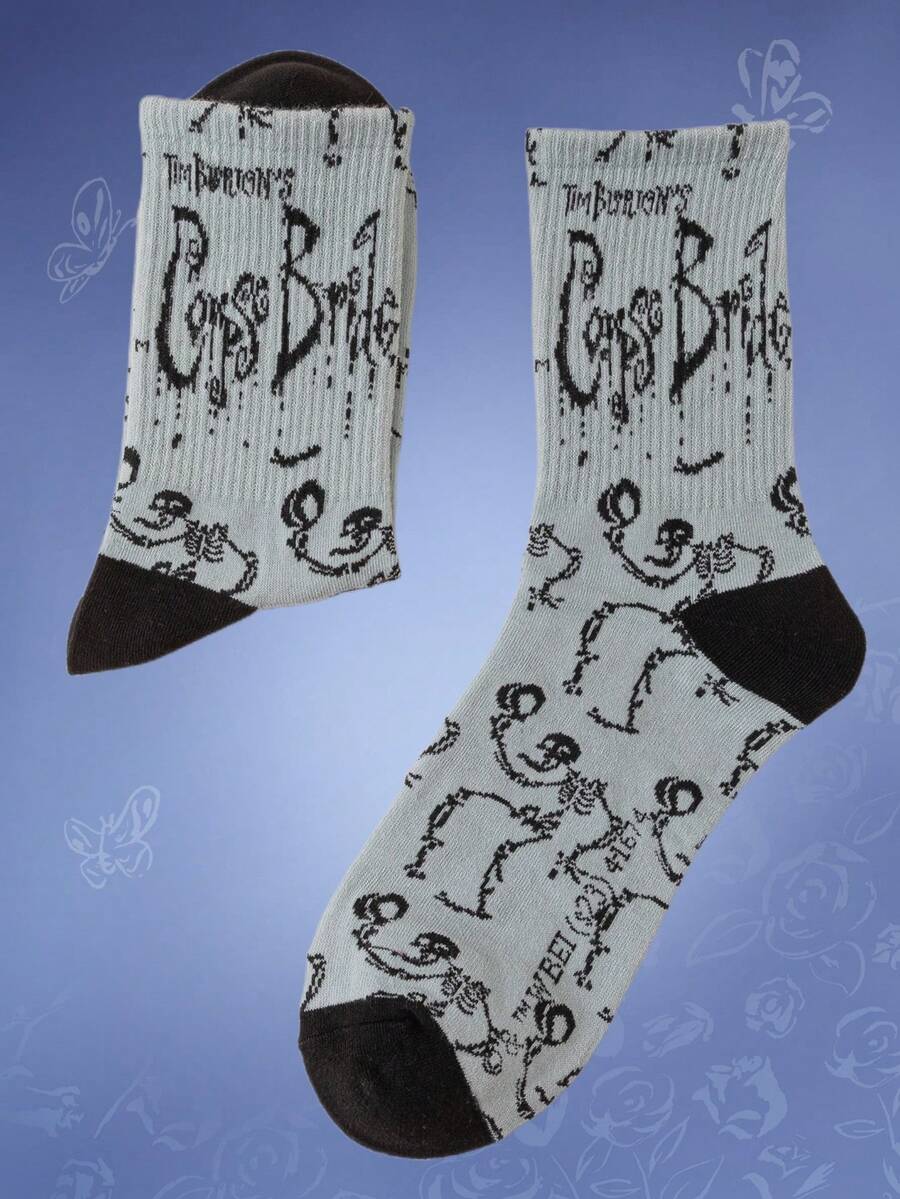 Corpse Bride | ROMWE 1pair Women Letter Skull Pattern Crew Socks