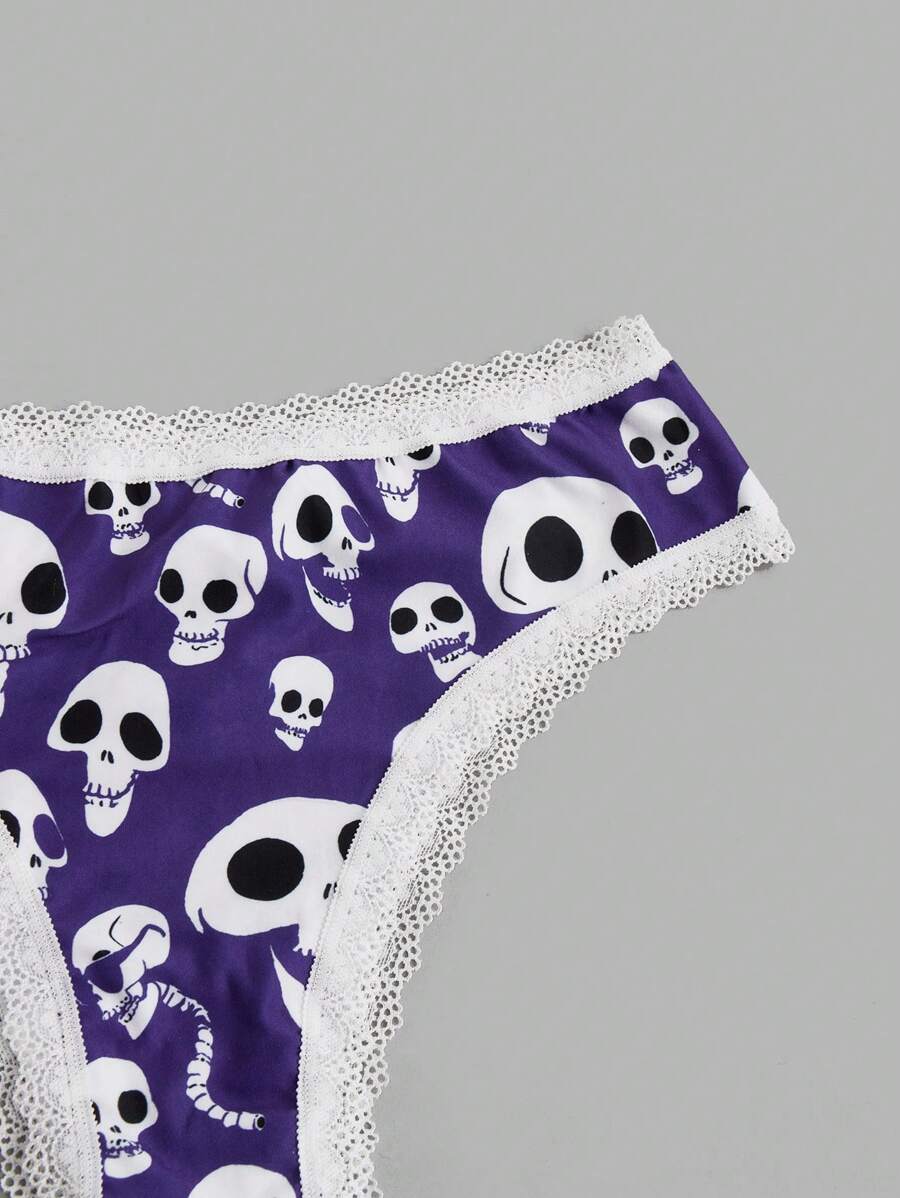 Corpse Bride | ROMWE 3pack Skull Floral Graphic Contrast Lace Briefs