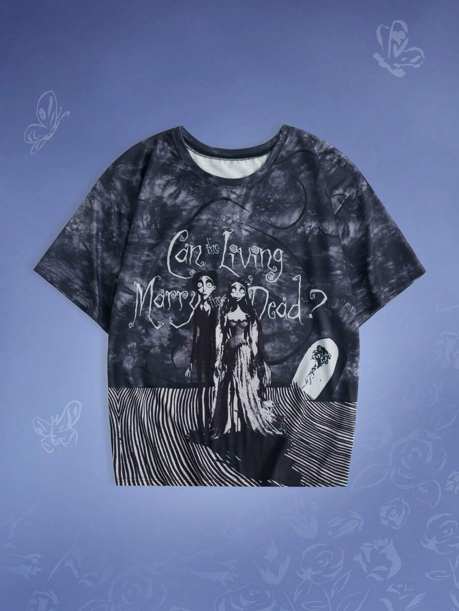 Corpse Bride | ROMWE Letter & Figure Graphic Tie Dye Tee