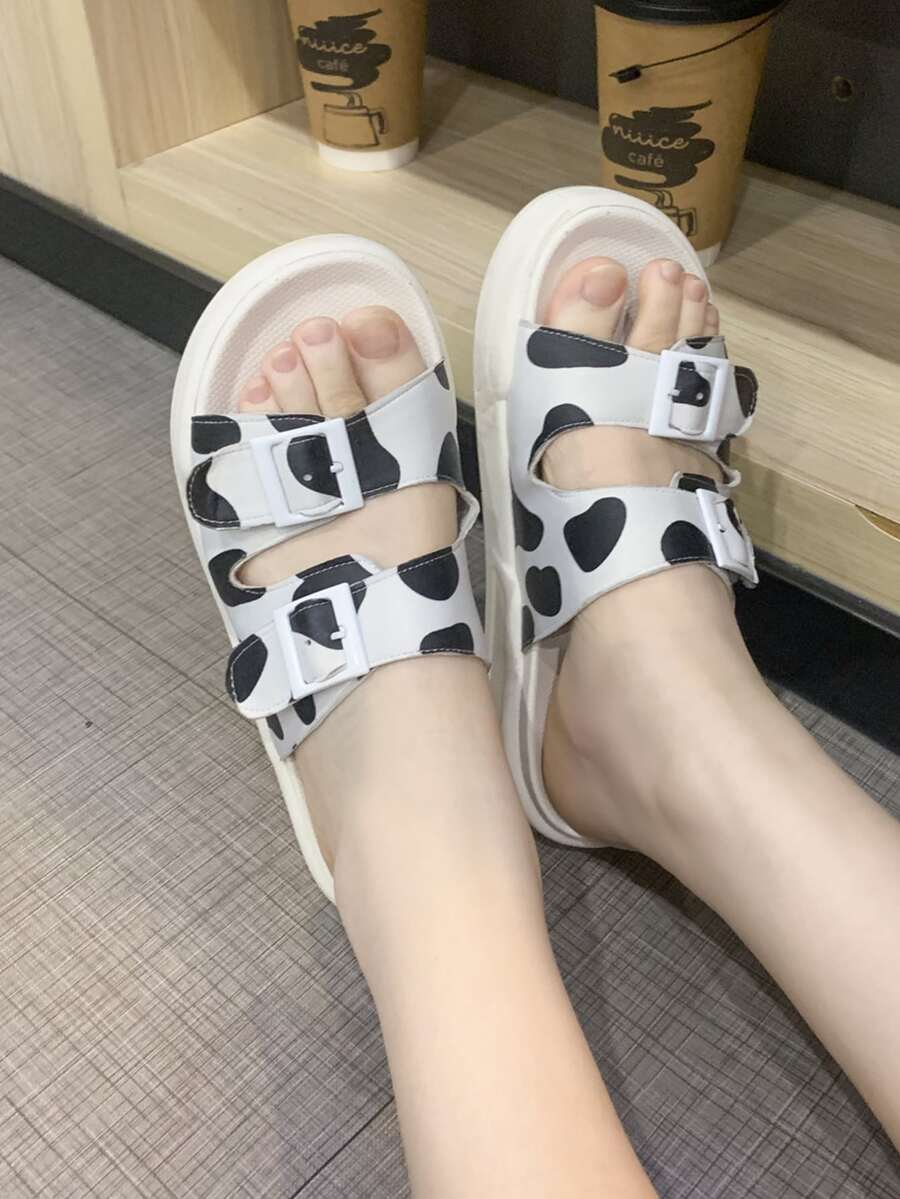 Cow Print Buckle Decor Sandals