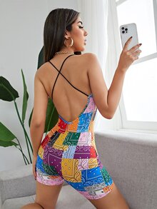 Crisscross Back Paisley Print Romper