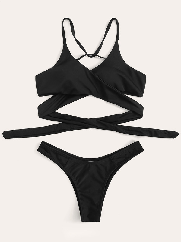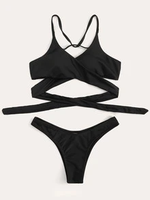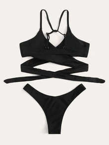 Crisscross Wrap Halter Top With Hipster Bikini Bottom