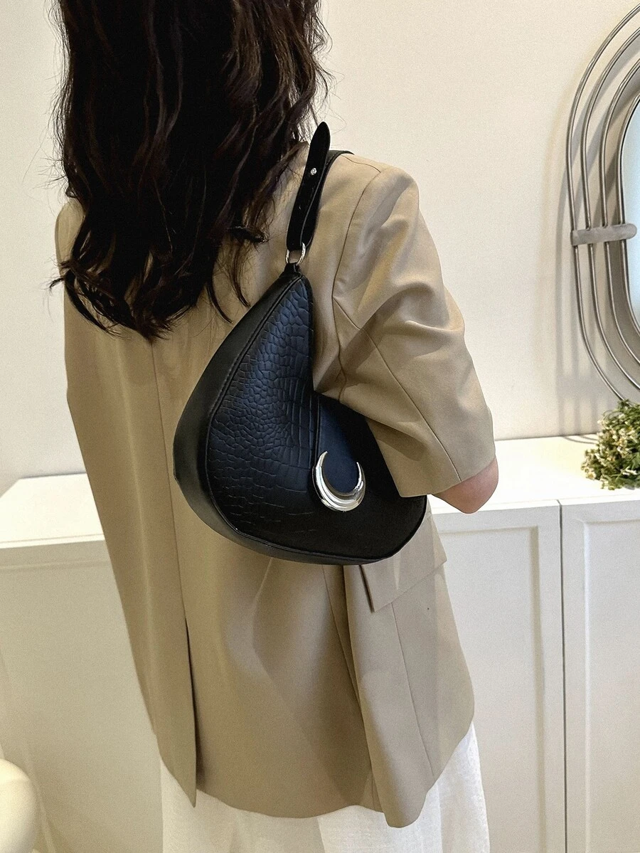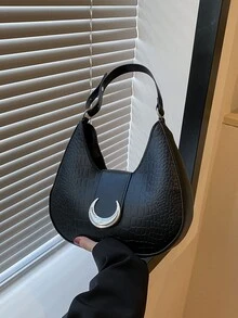 Crocodile Embossed Hobo Bag Metal Moon Decor Elegant