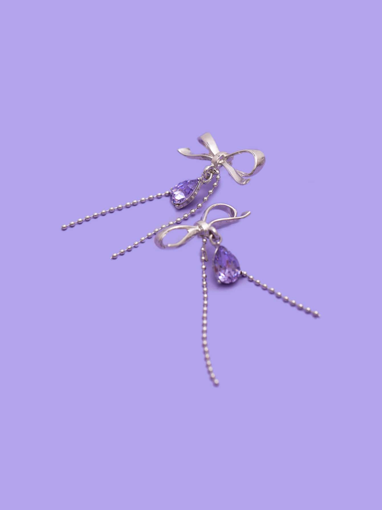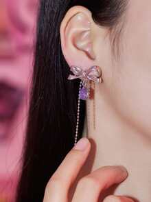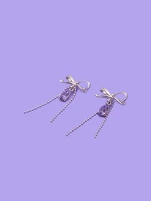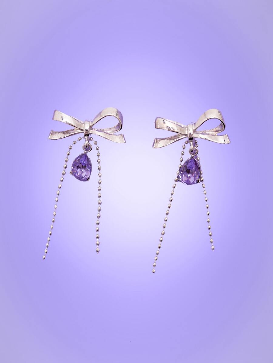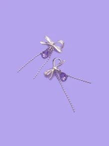 Crystal Drop Bow Decor Earrings