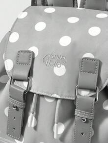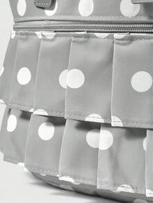 Kawaii Cute & Sweet Polka Dot Ruffle Patchwork Fashion Backpack For Women, With Music Note Pendant, Minimalist Drawstring Flap Closure Travel Bag, Suitable For School, Travel, Fits Laptop
