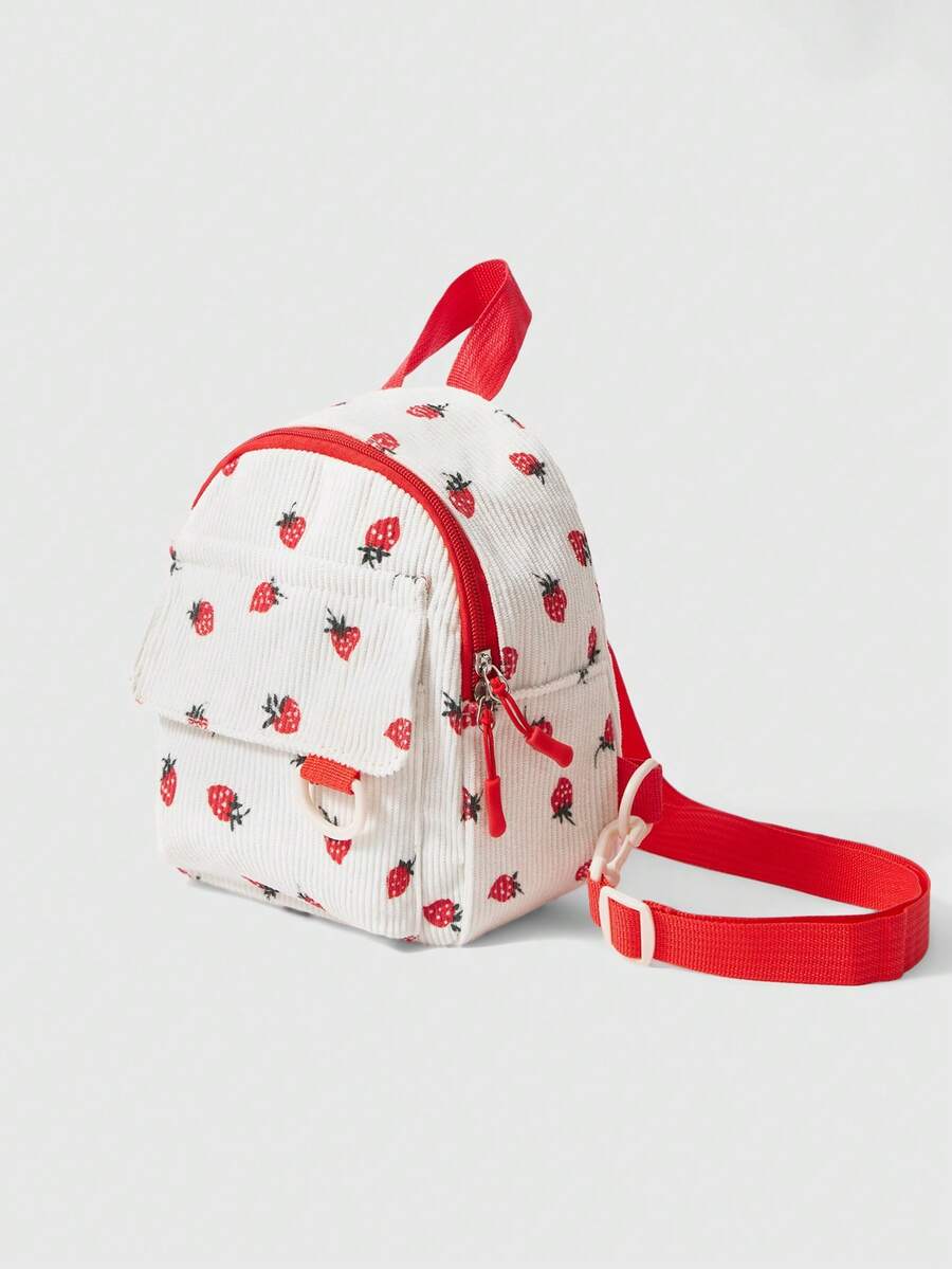 Kawaii Cute And Sweet Corduroy Lightweight Large Capacity Backpack, Perfect For Traveling,Spring Outings, Going To School Or As A Small Bag, Print LocationI S Random