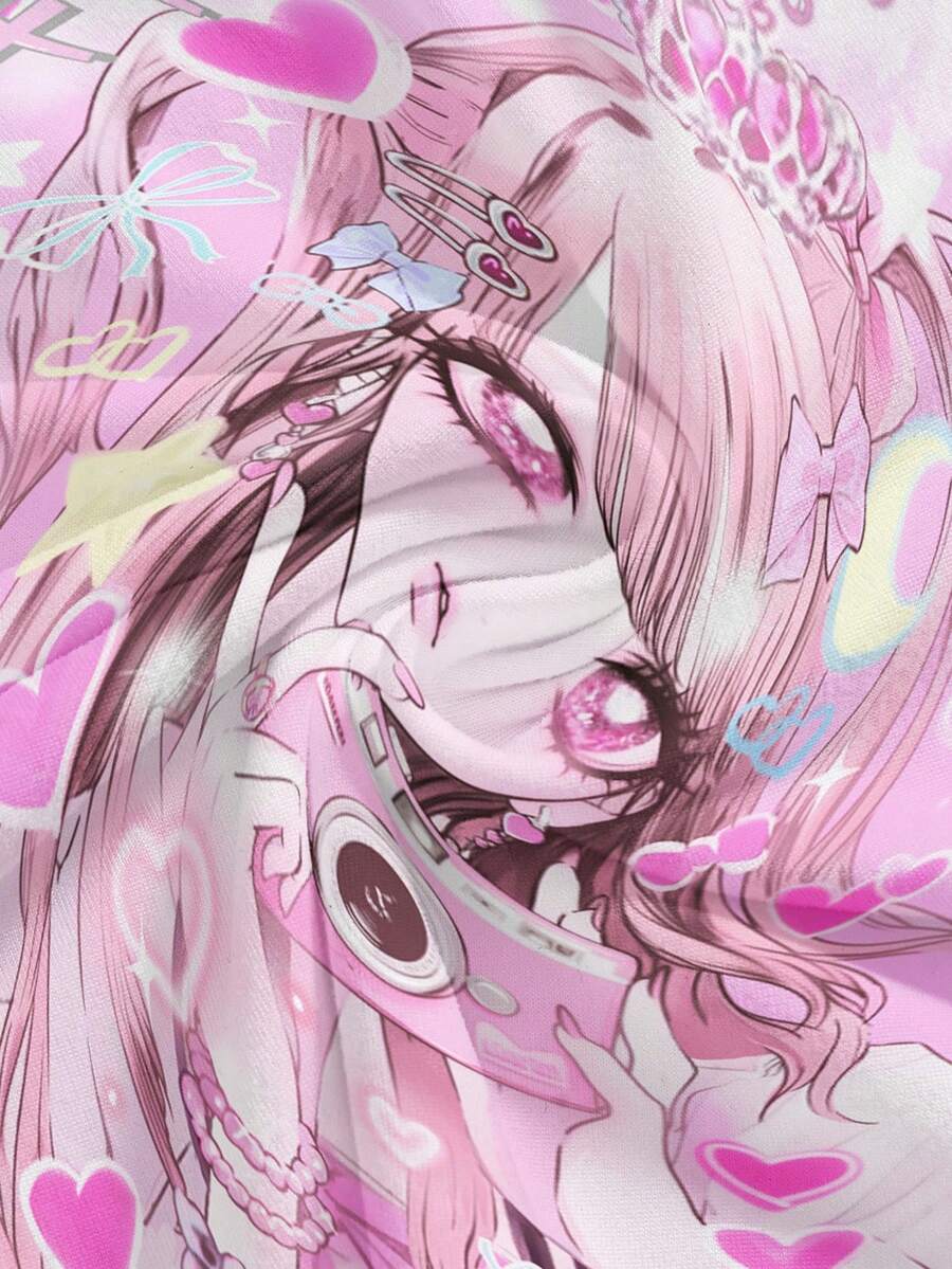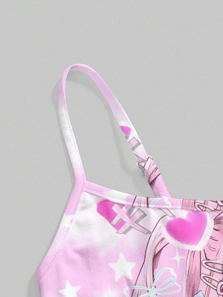 Cute Anime Heroine Print Sexy Cami Top With Bow Decor For Women, Fashionable Photo Prop Suitable For Going Out