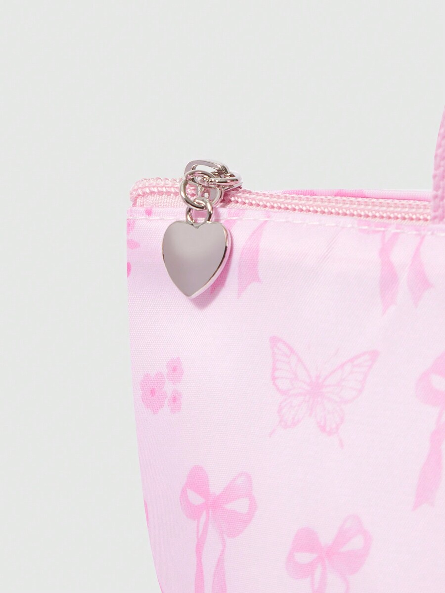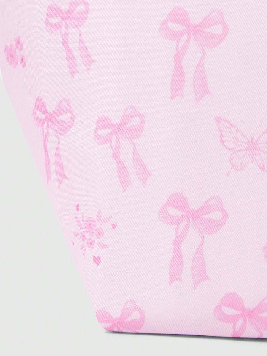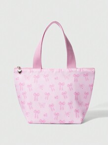Kawaii Cute Pink Bow-Knot Fashionable Tote Lunch Bag With Thermal Insulation & Large Capacity Valentines