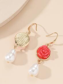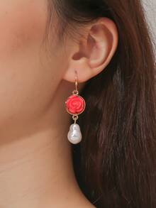 1pair Fashionable Flower & Faux Pearl Drop Earrings For Women For Daily Life