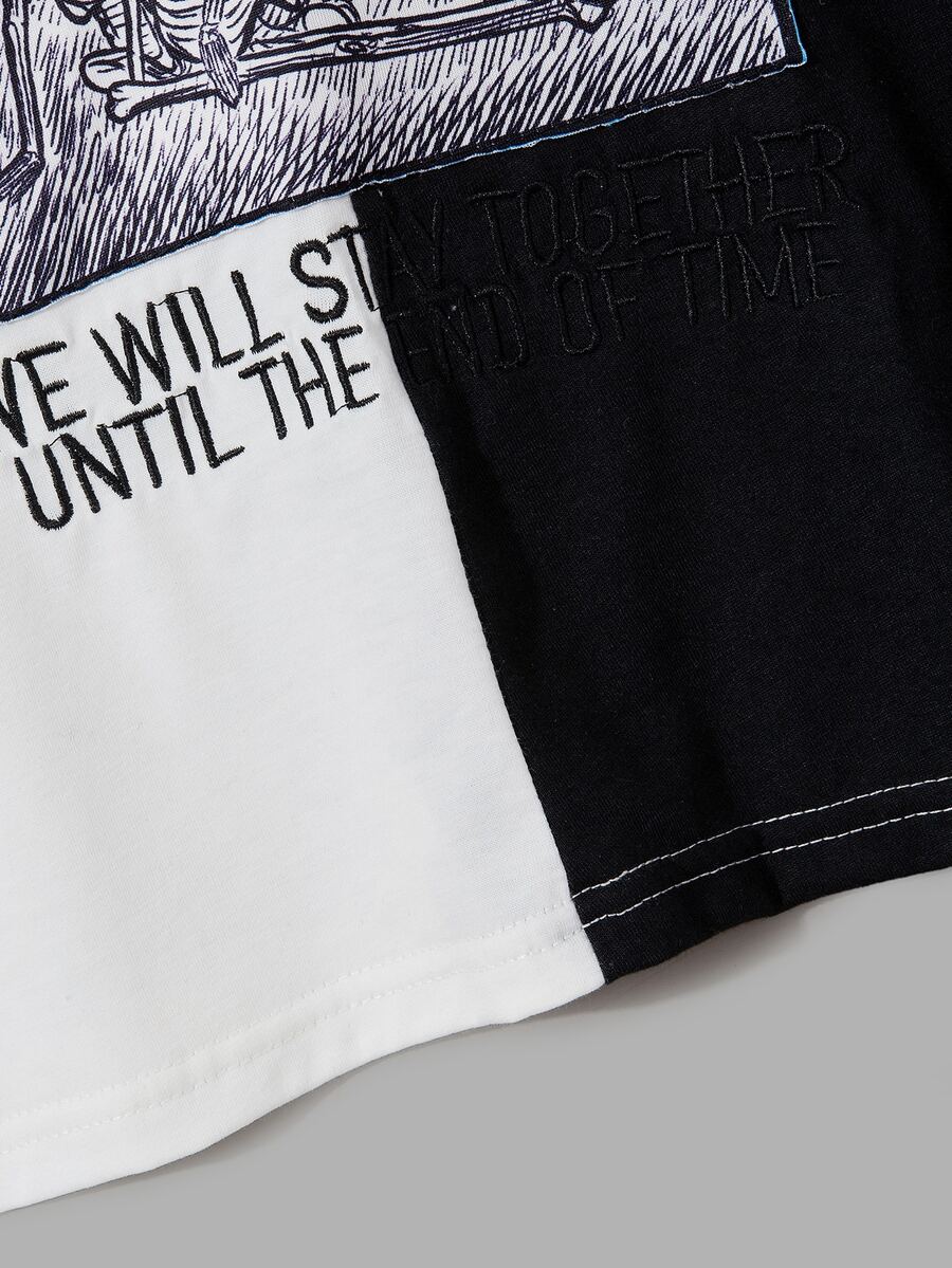 Danielevicentini Slogan Skull Graphic Colorblock Crop Tee