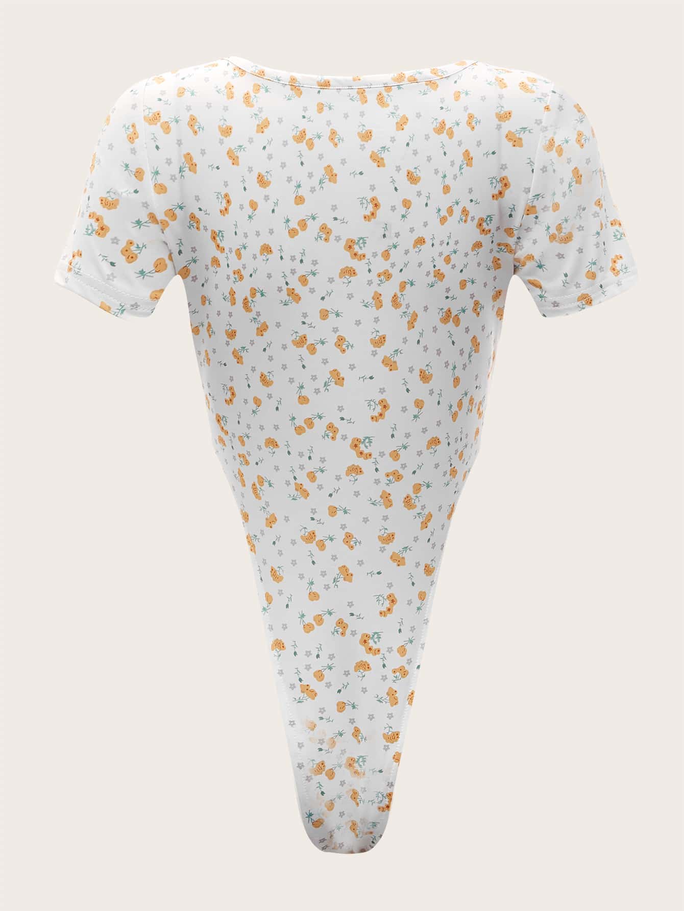 Ditsy Floral Contrast Lace High Cut Bodysuit