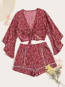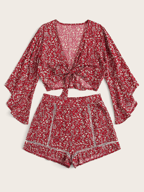 Ditsy Floral Tie Front Top & Shorts