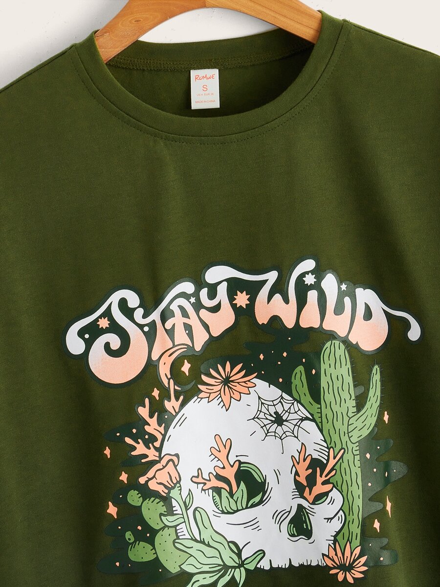 DoodlebyMeg Slogan Skull & Cactus Graphic Drop Shoulder Tee